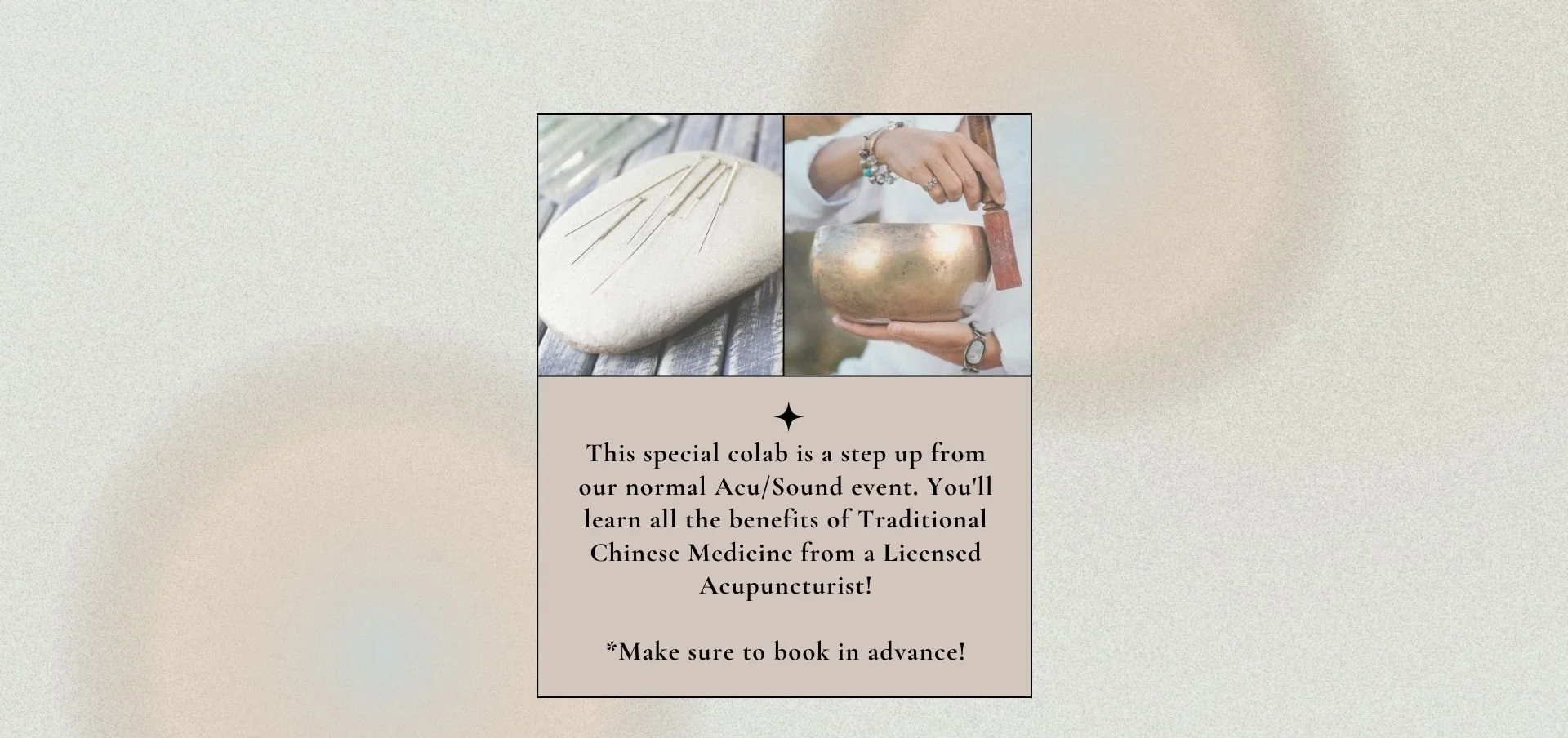 An evening of pure relaxation and full body healing! Using TCM ( Traditional Chinese Medicine) Acupuncture along with Sound Healing Therapy.