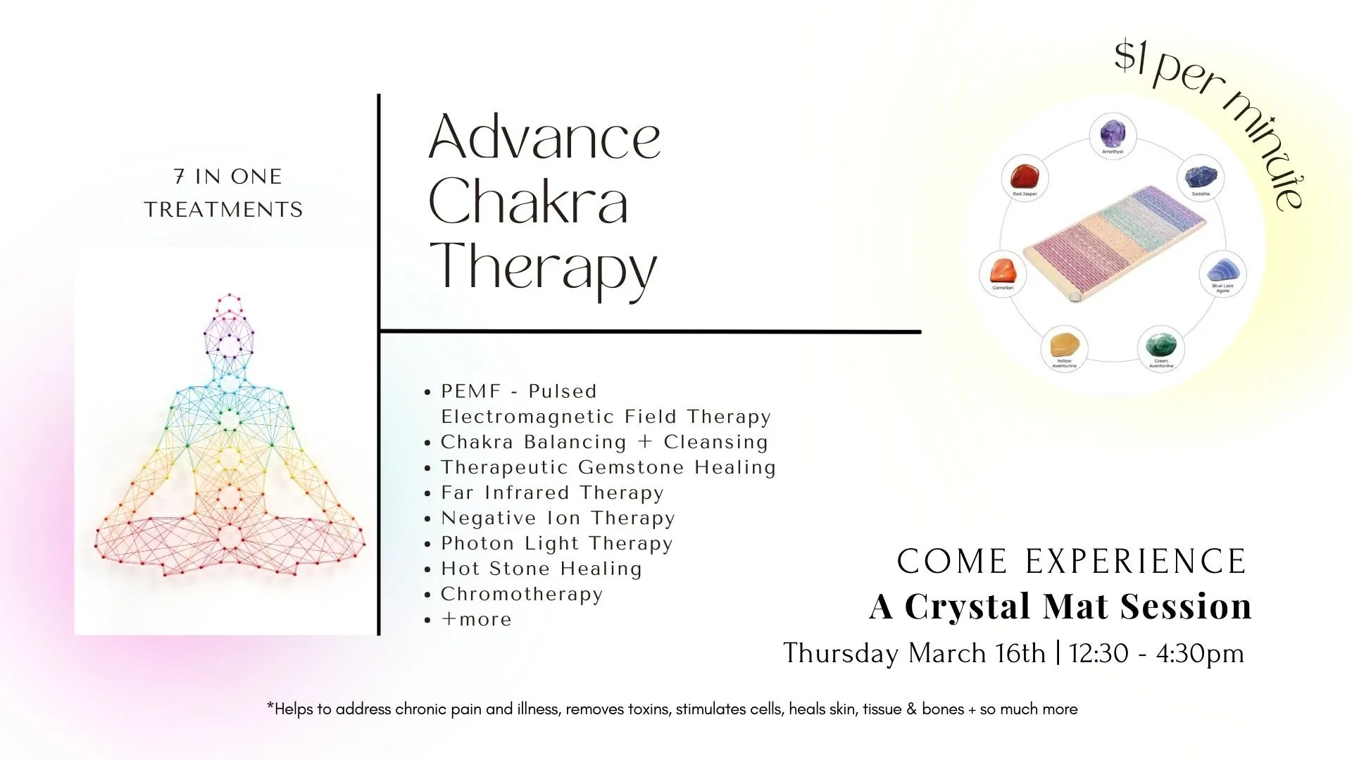 Our NEW PEMF Crystal Therapy Mat offers 7 Treatments in one!