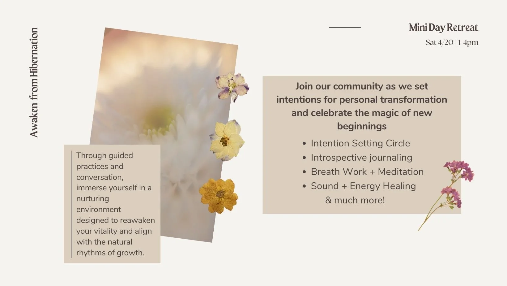 Join us for a transformative Entrance into Spring: Awakening from Hibernation Mini-Retreat.